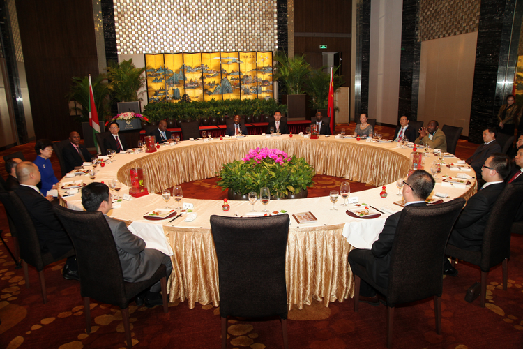 访问期间,鉴于优秀的品牌形象及深厚的牡丹等文化底蕴,瓦努阿图共和国总理乔.纳图曼夫妇与布隆迪国总统恩库伦齐扎夫妇不约而同的选择“古河州”作为国宴用酒,来款待中外宾客。甘肃古河州酒业公司特地定制陈年窖藏酒,并由旗下景德镇创玉瓷业提供的精美瓷器作为外宾礼物。古河州酒和瓷器礼品作为国礼受到了大使阁下和中外来宾的高度评价。